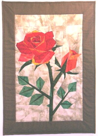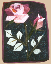 This rose is completely paperpiecied. Now curves or y-sewing is neccessary but because of a lot of pieces the rose should not be your first paperpiecing project.