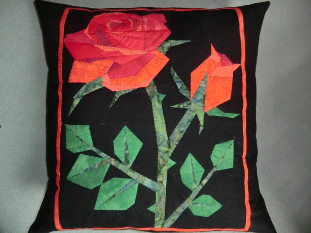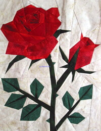 This rose is completely paperpiecied. Now curves or y-sewing is neccessary but because of a lot of pieces the rose should not be your first paperpiecing project.