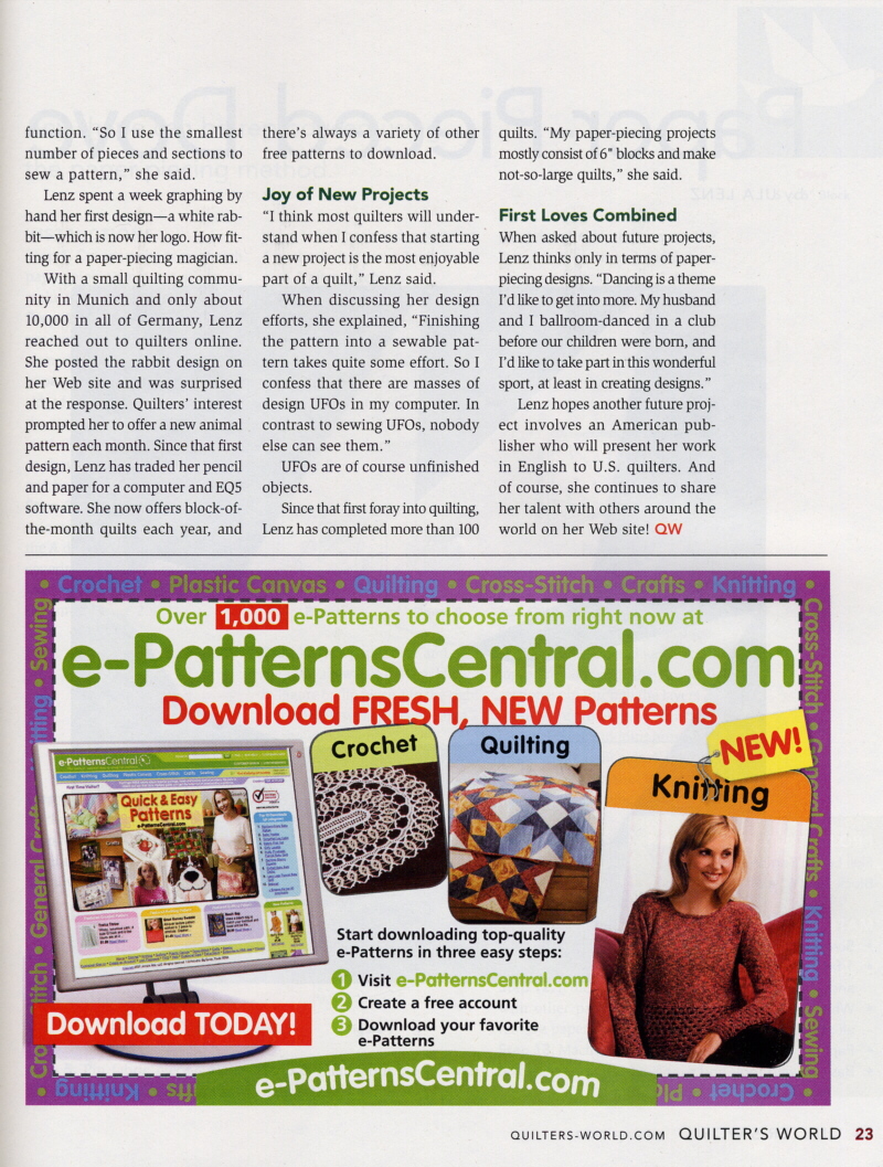 Quilter’s World Magazine August 2007